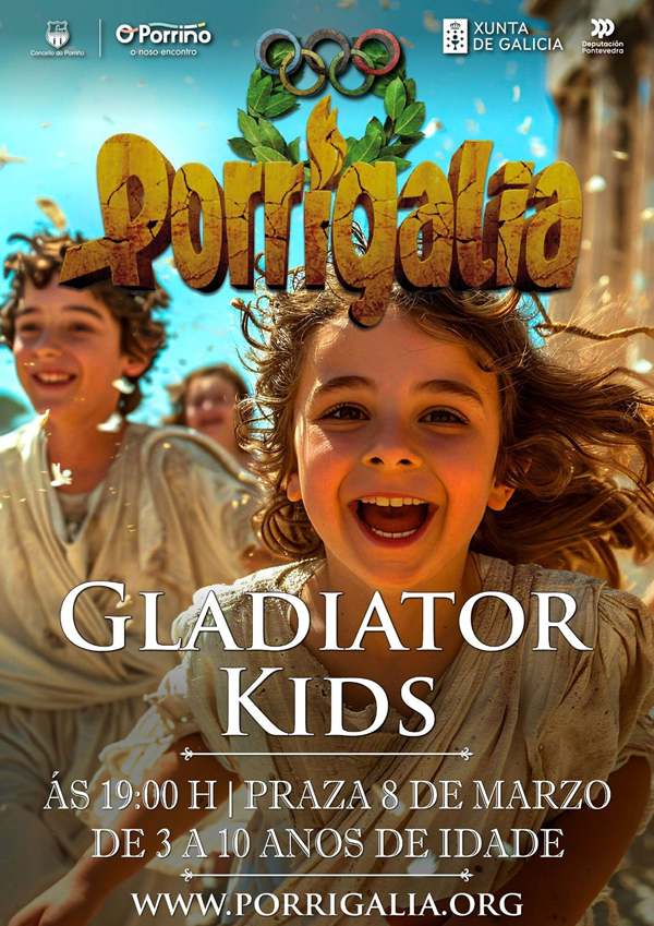 La PORRIGALIA KIDS es una carrera para niños/as sin carácter competitivo organizada por NOKAO y el Concello de Porriño. En la prueba podrá participar cualquier niño/a que el día de la celebración de la prueba tenga cumplida la edad entre 3 y 10 años. El evento será el 13 de julio a partir de las 19 horas en la PLAZA 8 DE MARZO de Porriño.